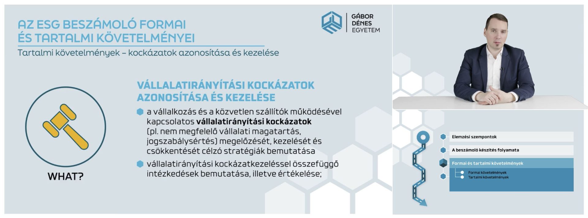 A Gábor Dénes Egyetem felkérésére egy akkreditált, 100%-ban online ESG szakirányú továbbképzés teljes e-learning tananyagát készítettük el – a GDE által meghatározott módszertan alapján, szakértőkkel közösen. A képzés célja, hogy a résztvevők ne csupán elméleti keretet kapjanak az ESG-hez, hanem valóban vállalati környezetben használható tudást szerezzenek: a fenntarthatósági keretrendszerektől a compliance alapokon és ESG-jelentések elemzésén át a vállalatirányítási rendszerekig.